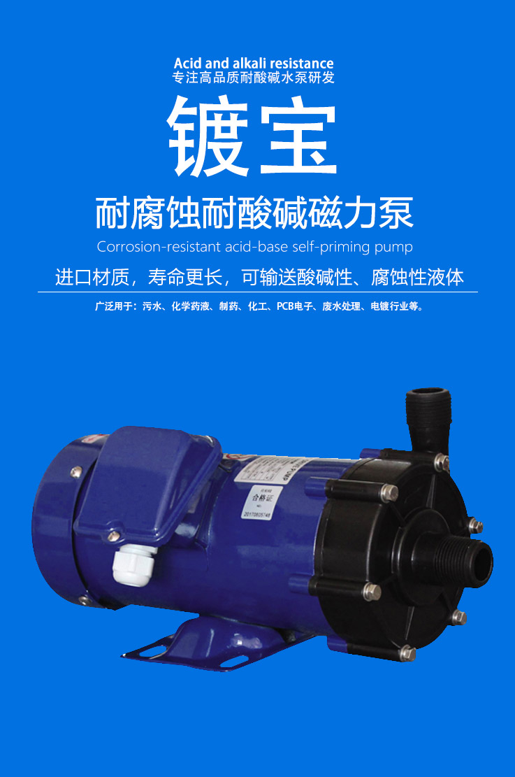 MD系列磁力泵結(jié)構(gòu)小巧,防漏, 在各個(gè)行業(yè)廣泛應(yīng)用,以其耐腐蝕性和耐用性而擁有廣大用戶(hù)的贊譽(yù)。主要材質(zhì)使用FRPP、PVDF ETFE ,可以用來(lái)輸送多種腐蝕性的液體。MD系列因其結(jié)構(gòu)小巧,非常適用于過(guò)濾、噴淋、清洗、蝕刻等各種表面處理相關(guān)工藝。